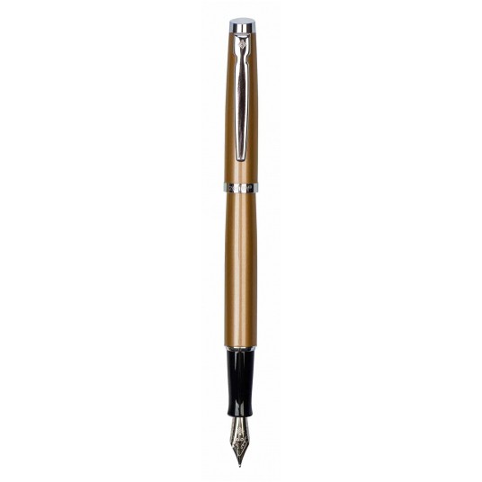 Pióro wieczne Zenith Omega w eleganckim wykończeniu. Klips, stalówka oraz obrączka korpusu pokryte wysokiej jakości powłoką niklową. Dodatkowo stalówka zakończona jest irydową kulką dla zapewnienia doskonałej jakości i łatwości pisania. Pióro posiada wymienne naboje atramentowe.