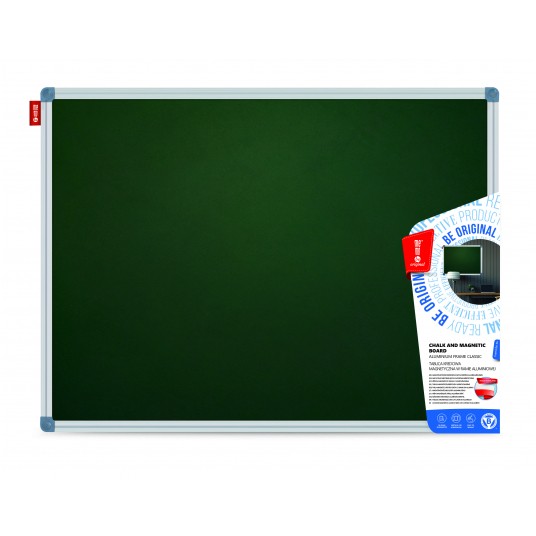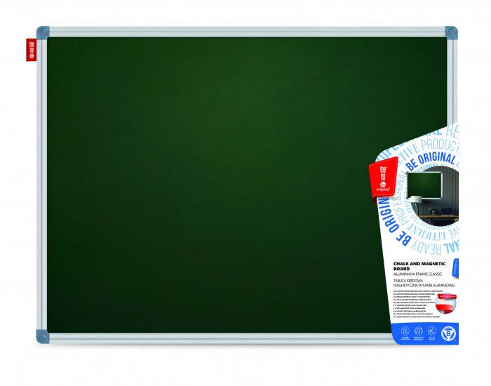Tablica kredowa magnetyczna zielona MemoBe. Właściwości suchościeralne pozwalają na pisanie po powierzchni tablicy kredą i markerami kredowymi. Natomiast właściwości magnetyczne dają możliwość umieszczania na tablicy rysunków, plakatów i ogłoszeń za pomocą magnesów. Powierzchnia tablicy wykonana jest z wysokiej jakości stali lakierowanej w kolorze zielonym. Z tyłu tablicy zastosowano pilśnię, która pełni rolę usztywnienia oraz jako dodatkowe wzmocnienie dla największych formatów tablic (od 240x100 cm wzwyż) blachę ocynkowaną. Rama Classic wykonana jest z anodowanego aluminium w kolorze popielatym o szer. 18 mm i grub. 16 mm. Narożniki ramy są również w kolorze popielatym. W zestawie dołączony jest komplet wkrętów i kołków rozporowych, aluminiowa półka w kolorze popielatym o dług. 30 cm z plastikowymi zaślepkami, które zabezpieczają brzeg półki oraz instrukcja montażu. Możliwość montażu tablicy w pozycji pionowej lub poziomej w czterech rogach. Tablica polecana jest jako podstawowe wyposażenie dla wszystkich jednostek edukacyjnych i instytucji biurowych. Klasyczna i modernistyczna konstrukcja oraz kunsztowne wykończenie sprawiają, że tablica doskonale wkomponowuje się w wystrój każdej klasy szkolnej, sali wykładowej, biura czy pokoju w miejscu zamieszkania. Produkt przeznaczony jest do użytku wewnętrznego. Ponadto tablica stanowi znakomite wsparcie dla nauczycieli jako pomoc dydaktyczna oraz olbrzymie udogodnienie dla liderów spotkań biznesowych, którzy mogą wzbogacać swoje prezentacje i wykłady o komunikaty wizualne, co z kolei wpływa na ich szybkie zapamiętywanie. W domu tablica jako nośnik informacji przejmie rolę świetnego pomocnika planistę i organizatora codziennych zajęć zarówno dla dzieci, młodzieży i dorosłych. Pozwoli na uporządkowanie notatek, naukę pisania, prezentacje rysunków dziecka i innych ważnych informacji. Tablicę cechuje niezwykła trwałość i sztywność dzięki zastosowaniu wysokiej jakości materiałów, które zapewniają bezpieczeństwo podczas ich montażu i użytkowania. Dzięki wysokiej jakości powierzchni, prezentowane na tablicy treści są dobrze widoczne i czytelne. Okres gwarancji na powierzchnię wynosi 10 lat. Czyszczenie tablicy - za pomocą miękkiej gąbki lub ściereczki. Do pisania należy używać kredy i markerów kredowych przeznaczonych do tablic. Tablice kredowe magnetyczne MemoBe posiadają Certyfikat Zgodności, który potwierdza, że wyrób spełnia wymagania zawarte w normie PN-EN 14434:2010, tzn. jest bezpieczny podczas jego montażu i użytkowania. Produkt opatrzony jest znakiem B (Bezpieczeństwo).