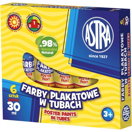 Farby plakatowe w tubach do malowania na papierze, kartonie, drewnie, nieglazurowanej ceramice i kamieniu. Wodorozcieńczalne farby kryjące są niezwykle wydajne i cechują się soczystymi i niezwykle intensywnymi barwami. Składają się w 98% z naturalnych składników i są odporne na działanie światła i ścieranie.