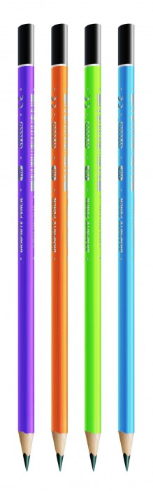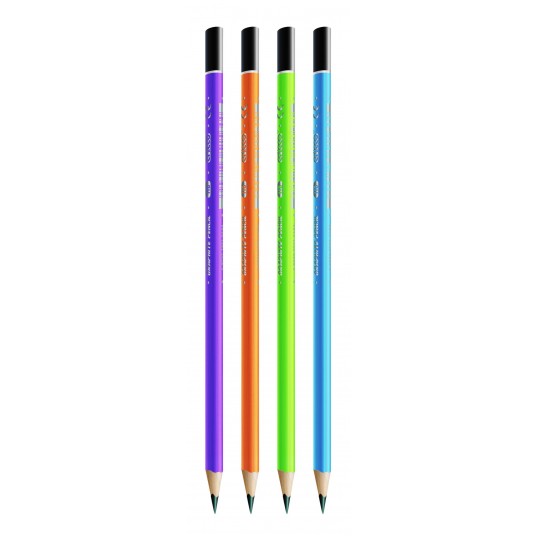 - ołówek z wysokiej jakości drewna - dostępny w czterech neonowych kolorach - trójkątny kształt wyrabia prawidłowych chwyt i zapewnia komfort użytkowania - oryginalnie zatemperowany - wytrzymały, wzmocniony grafit o twardości HB - dostępny w displayu oraz na blistrze