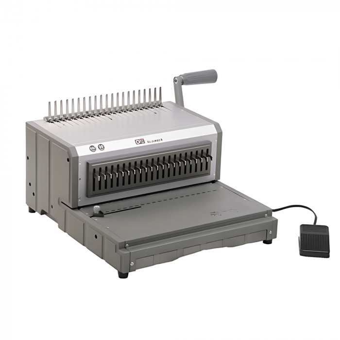 Bindownica firmy OPUS przeznaczona do oprawiania dokumentów grzbietami plastikowymi. Dzięki metalowej obudowie oraz dobrze rozmieszczonym, ergonomicznym dźwigniom do dziurkowania dokumentów i rozciągania grzbietów, urządzenie to jest bardzo funkcjonalne i łatwe w obsłudze. Dodatkowo wyposażona została w regulator marginesu oraz boczny ogranicznik papieru, a dzięki naniesionej skali grubości grzbietów jest bardzo czytelna. Idealna dla średnich i dużych biur oraz do punktów usługowych. Następczyni cieszącej się uznaniem klientów bindownicy „JUMBO”.