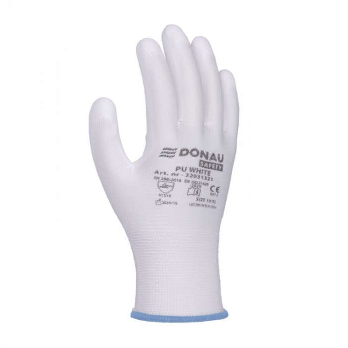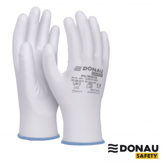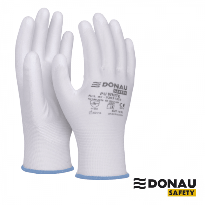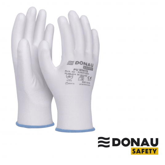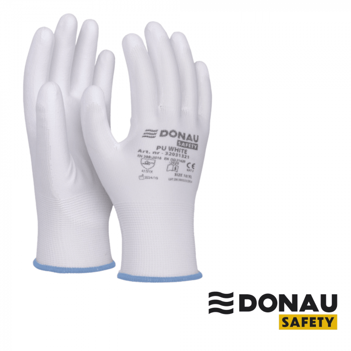 Rękawice białe Donau Safety PU, kategoria II, rozmiar 9