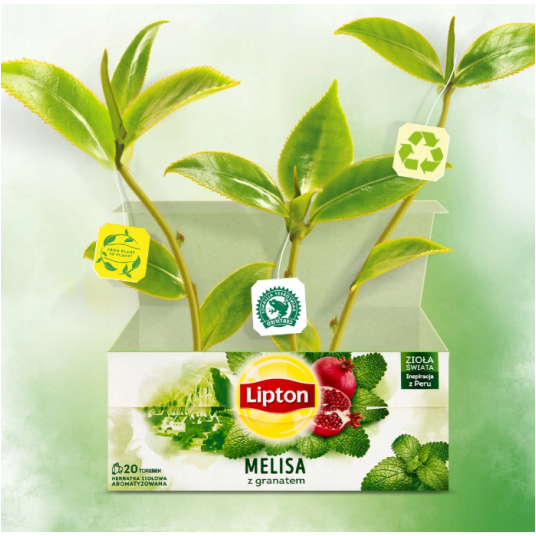 Herbata ziołowa Lipton o smaku melisy z granatem w praktycznych torebkach to doskonały wybór na każdą porę dnia.