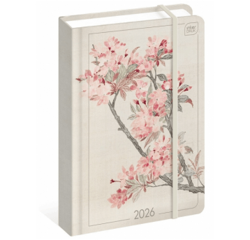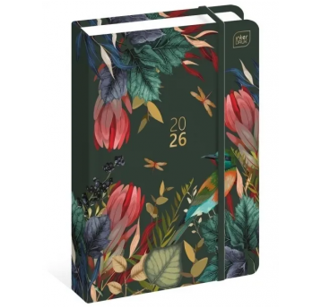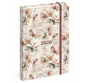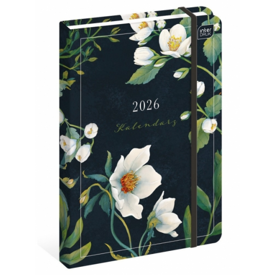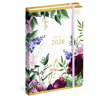Kalendarz A5 192 Mat +UV Fiori marki Interdruk posiada także elastyczną, czarną gumkę do zamknięcia terminarza.