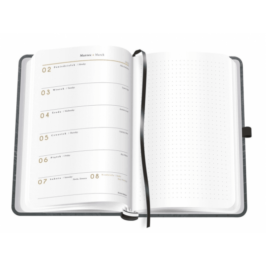 Idealny zarówno do pracy, szkoły, jak i do domowej organizacji – piękny i praktyczny kalendarz, który doda uroku Twojemu biurku i torebce.