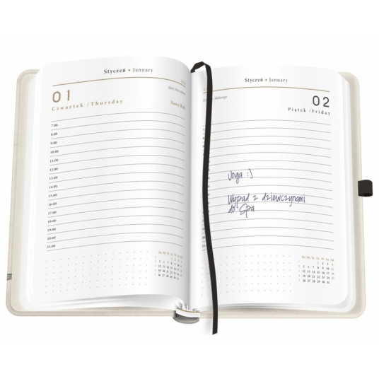 Kompaktowe wymiary sprawiają, że kalendarz jest idealny do noszenia ze sobą, by zawsze mieć go pod ręką. Zmieści się gdziekolwiek potrzebujesz - w torebce, czy plecaku.