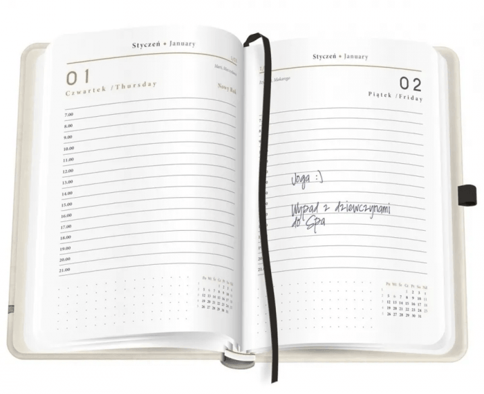 Dzięki niemu z łatwością zaplanujesz każdy dzień roku, zapiszesz ważne spotkania, a także znajdziesz miejsce na szybkie notatki.