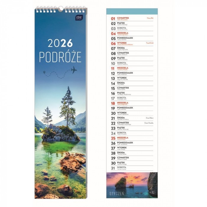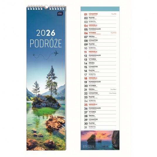 Kalendarz ścienny paskowy – 135 × 500 mm, Podróże, Interdruk 2026
