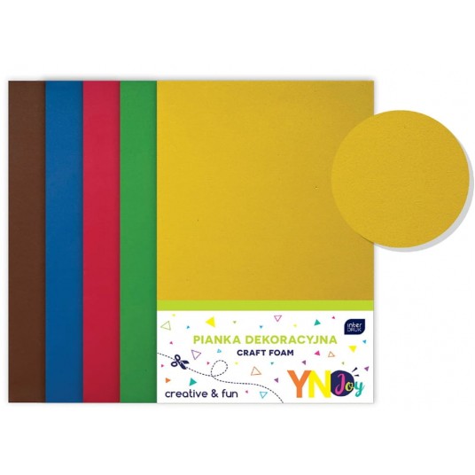Zestaw 5 arkuszy pianki dekoracyjnej Basic w formacie A4. Uniwersalna pianka idealna do prac plastycznych, dekoracji, scrapbookingu i projektów DIY.