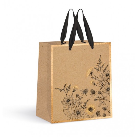 Praktyczna torebka prezentowa w kolorze kraft, wykonana z papieru o gramaturze 150 g/m², o wymiarach 18 × 23 × 10 cm. Torebka jest wytrzymała, estetyczna i gotowa do użycia, a naturalny wygląd papieru nadaje prezentowi ekologicznego i eleganckiego charakteru.