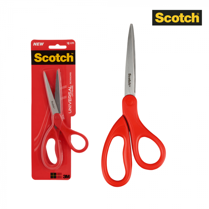Nożyczki uniwersalne SCOTCH®, 18cm, czerwone to solidne i wygodne narzędzie do codziennego użytku w biurze, szkole oraz w domu.