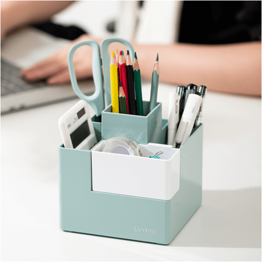 Dzięki przemyślanej konstrukcji z wieloma przegródkami umożliwia wygodne przechowywanie długopisów, ołówków, markerów, nożyczek, linijek oraz innych drobnych akcesoriów biurowych.