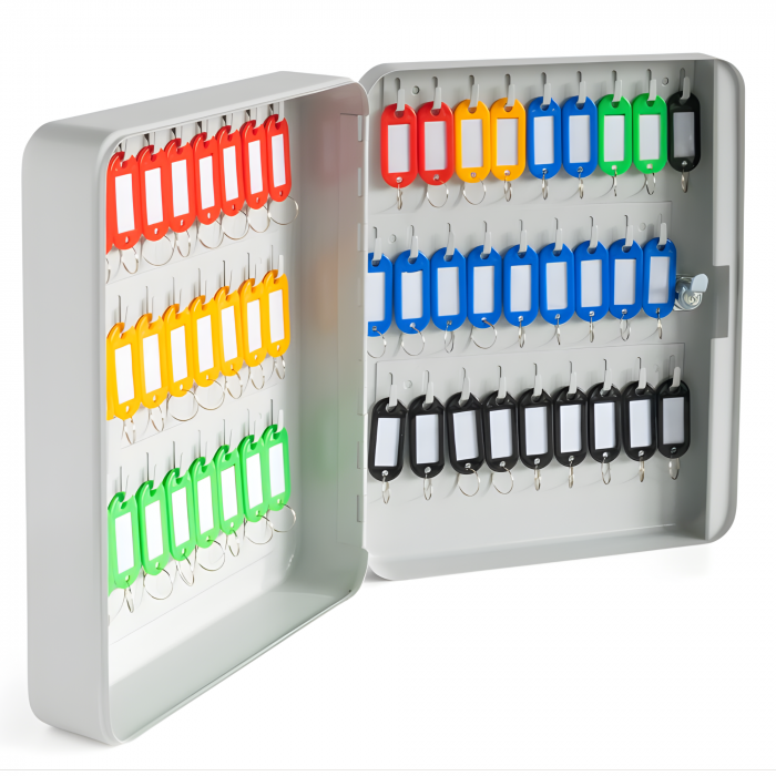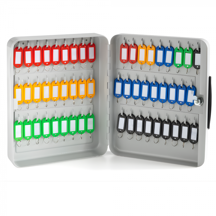 Dzięki dużej pojemności umożliwia uporządkowanie aż 54 kompletów kluczy w jednym miejscu, co ułatwia kontrolę dostępu i zapobiega ich zgubieniu.