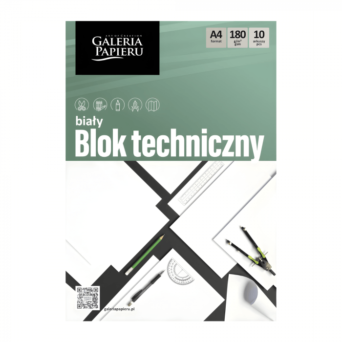 Blok techniczny A4/10 Biały 180g, Galeria Papieru