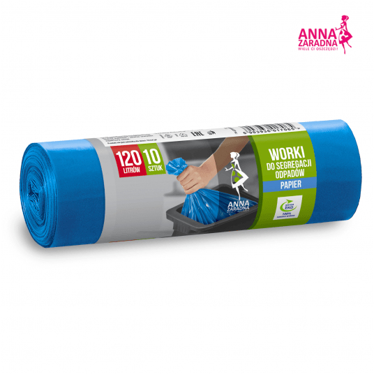Worki do segregacji odpadów 120L w kolorze niebieskim to praktyczne rozwiązanie do codziennego sortowania śmieci w domu, biurze oraz miejscach użyteczności publicznej.